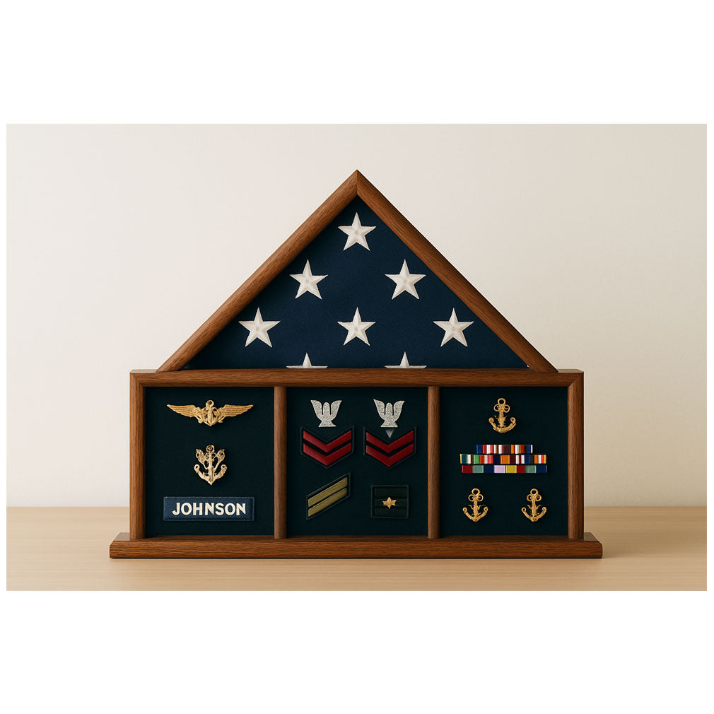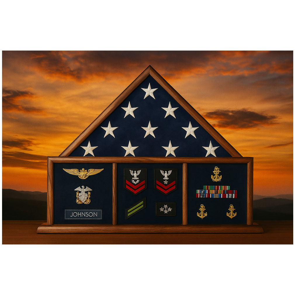 "This flag shadow box exceeded my expectations! The wood and glass are high quality, and it was easy to insert the flag. It’s now a beautiful centerpiece in our home, reminding us of my grandfather’s service and dedication." - John P.